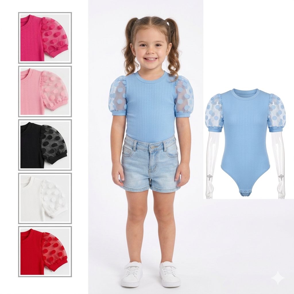 Apresentamos o nosso novo Body Canelado com Manga de Renda, a peça perfeita para deixar sua princesa ainda mais encantadora sem abrir mão do conforto! 🌸